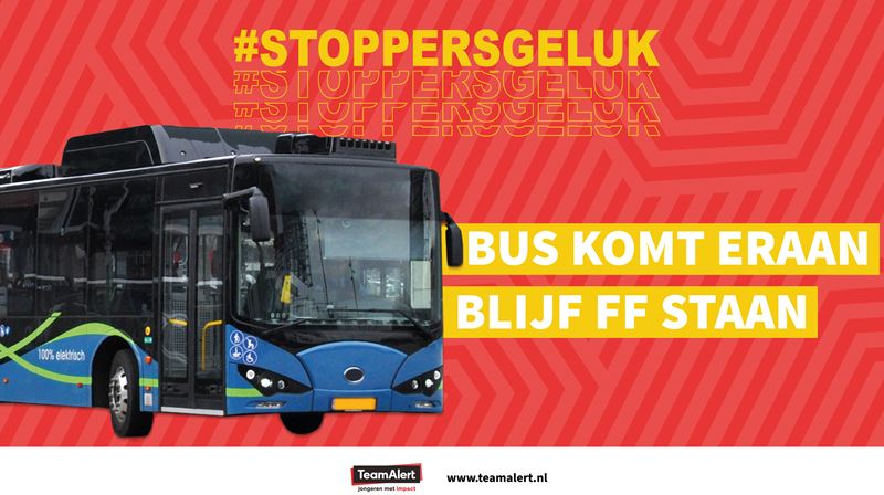 De campagne heeft een online en een offline gedeelte. De kick-off van de campagne is fysiek. Er staan jongerenvoorlichters van TeamAlert bij een oversteekplaats met een grote grabbelton. Scholieren die stoppen voor de bus, worden op een leuke manier geinformeerd over de risico's en mogen hun geluk proeven in de “Stoppersgeluk”-ton en maken kans op leuke prijzen. Via social media en in de bussen van Keolis worden campagnevideo’s verspreid. In deze video’s komt de boodschap van de campagne duidelijk naar voren. Daarnaast zijn er diverse offline uitwerkingen als posters in abri's en sandwichborden langs de weg.